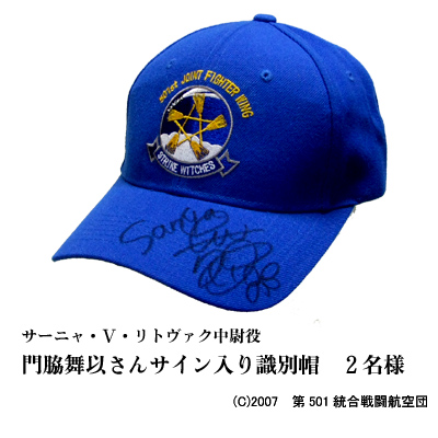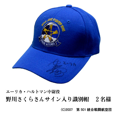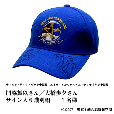 ■それともう一点、大ニュース!「みんながいるからできること!bis」終了と'09夏限定版クルー用識別帽の販売開始を記念しまして、エーリカ・ハルトマン役の野川さくらさん、サーニャ・V・リトヴァク役の門脇舞以さん、エイラ・イルマタル・ユーティライネン役の大橋歩夕さんのサイン入り識別帽を5名様にプレゼント致します!