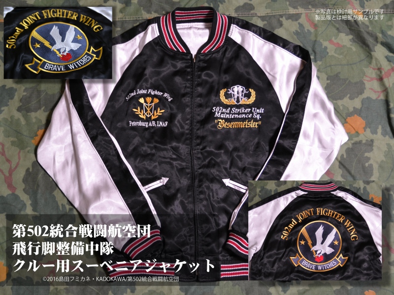■お待たせしておりました「ブレイブウィッチーズ」公式ライセンシーグッズ「第502統合戦闘航空団飛行脚整備中隊クルー用スーベニアジャケット」、無事入荷致しました。
