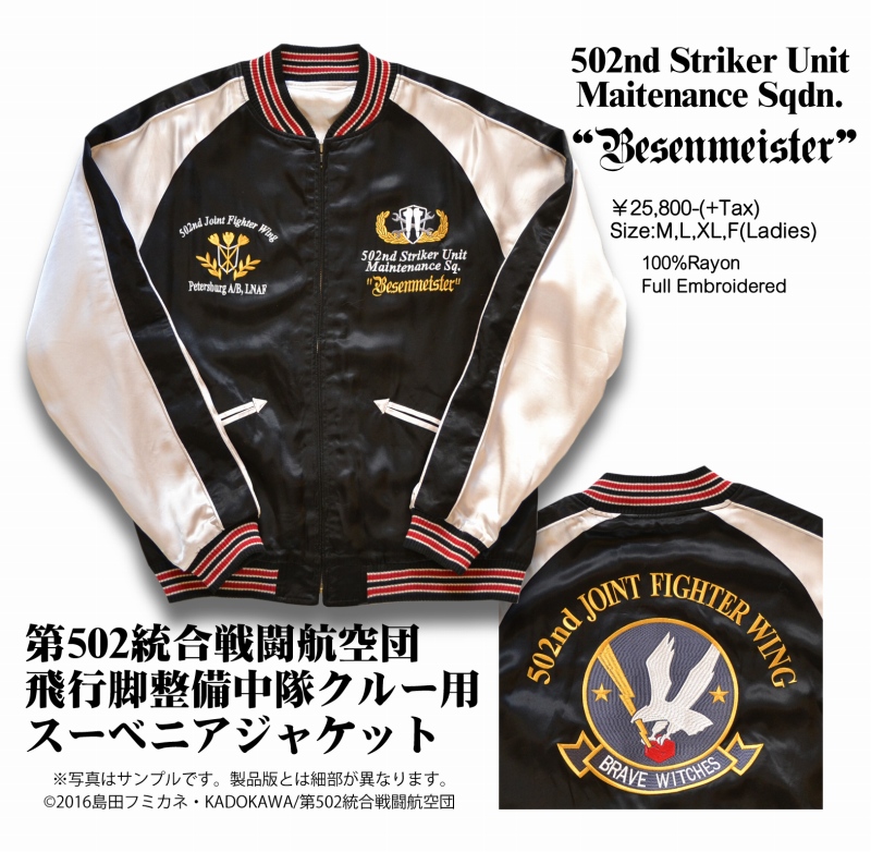 ■お待たせしました!弊社渾身の一品、「ブレイブウィッチーズ」公式ライセンシーアパレル商品第二弾、「第502統合戦闘航空団飛行脚整備中隊クルー用スーベニアジャケット」の商品紹介ページを公開致しました。