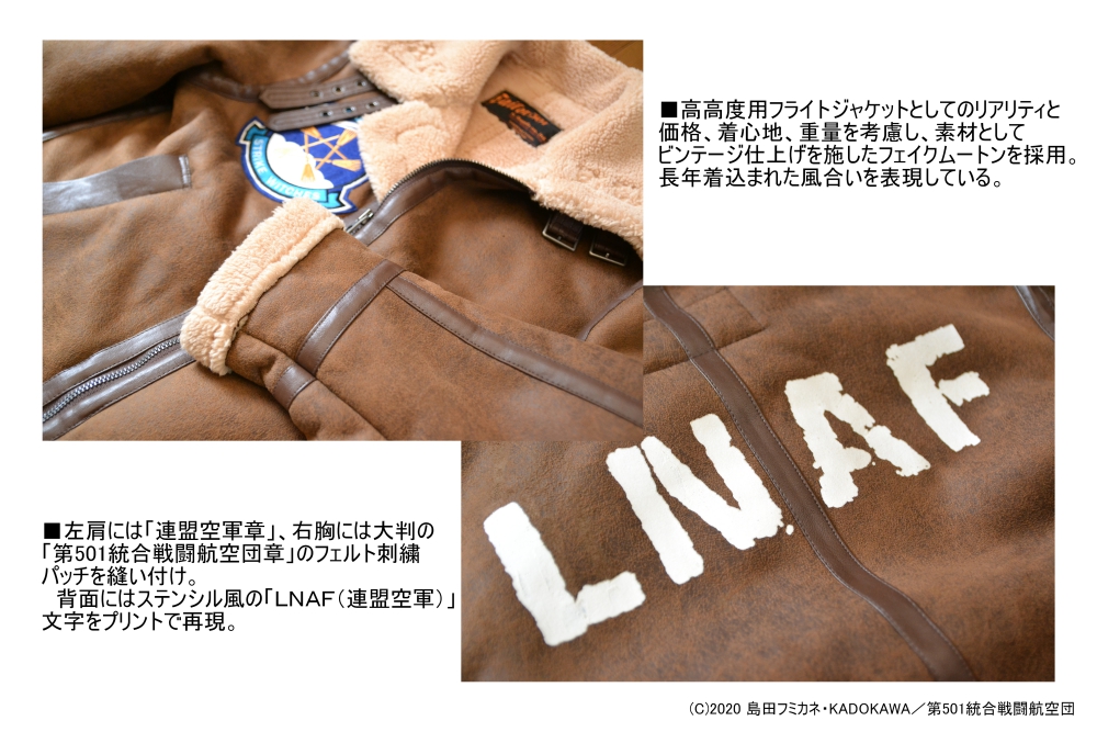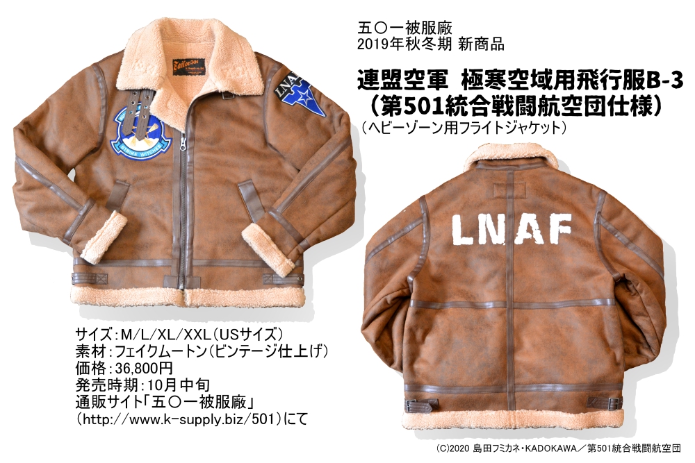 ■「アニメーション×リアルミリタリー」をテーマに弊社が企画・製作している「世界観グッズ」の中でも最大ボリュームのアイテムとなりました。新規製作の大判フェルト刺繍パッチや直接刺繍で表現したウィッチ達のパーソナルマークなど「カモジャケット」「B-3」どちらもきっとご満足頂ける商品に仕上がったと自負しております。お申し込みお待ちしております…!